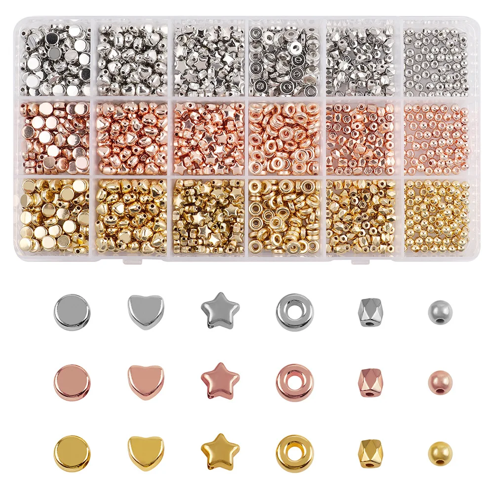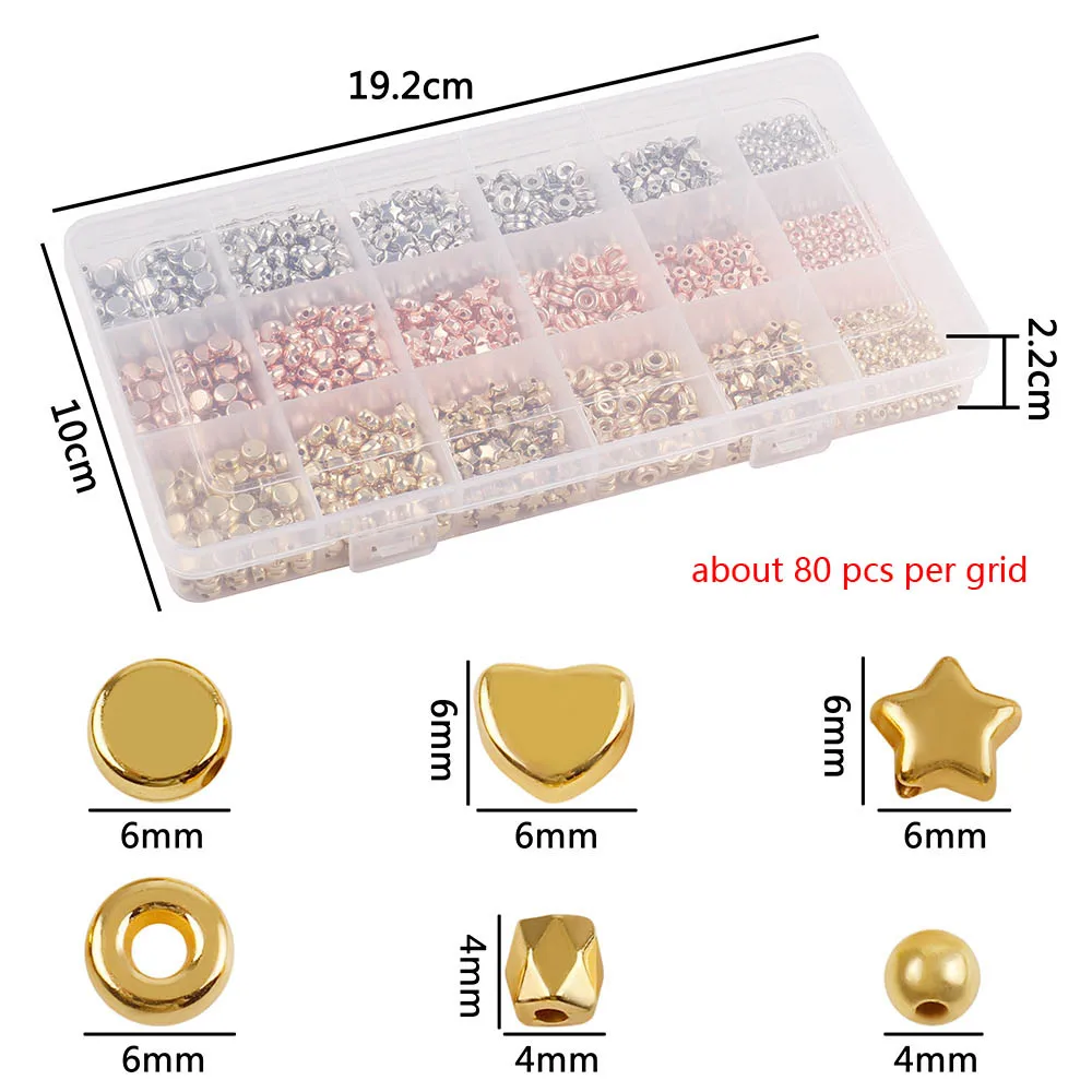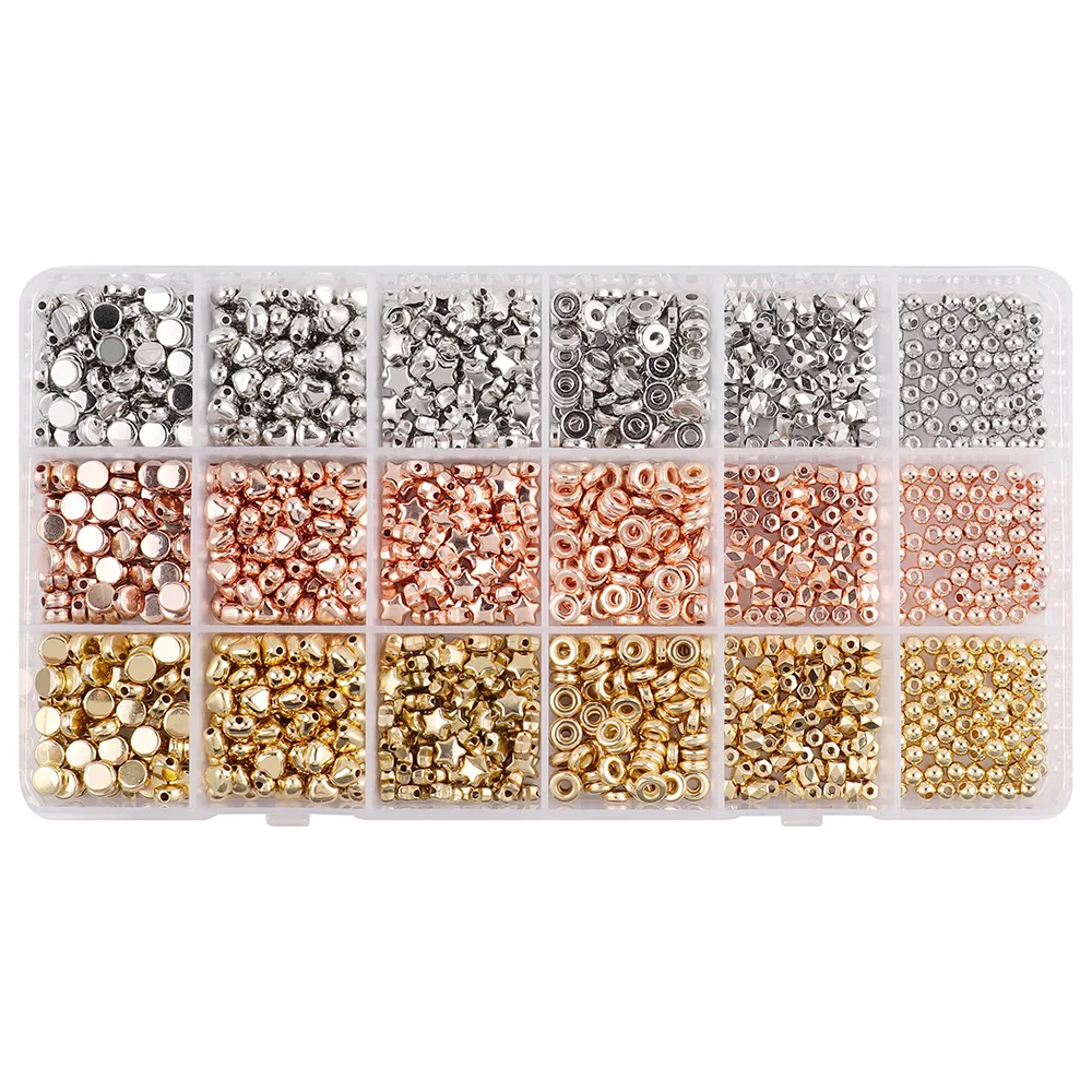 This jewelry making kits set features 1440pcs of CCB plated gold spacer beads. The set includes a variety of round and heart-shaped beads, perfect for creating unique jewelry pieces. These beads are ideal for bracelet making kit projects, necklace designs, and other personalized accessories. The beads are made with high-quality materials, ensuring long-lasting use and a polished look for your creations. The set comes in a convenient star-shaped box, making it easy to store and organize your beads.