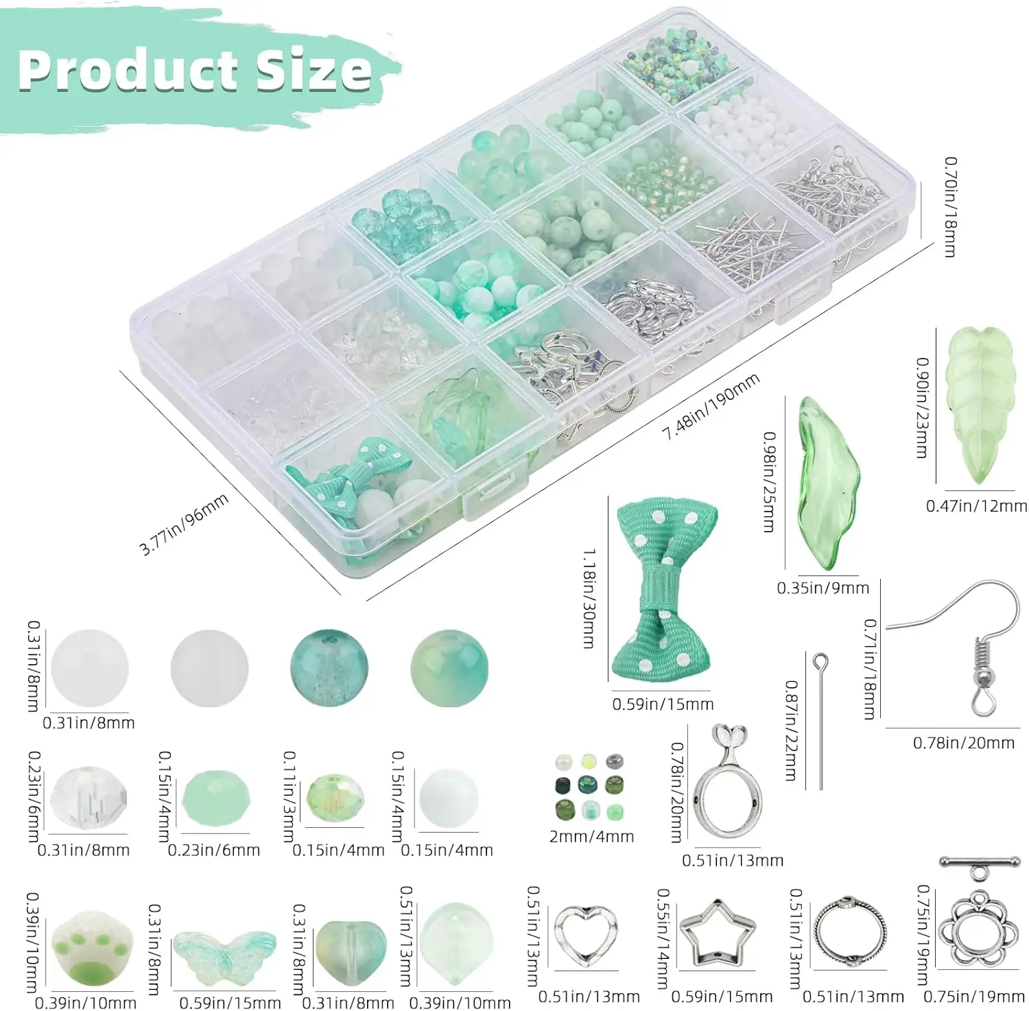 Jewelry making kits featuring green glass beads, perfect for creating DIY bracelets and other custom jewelry projects.
