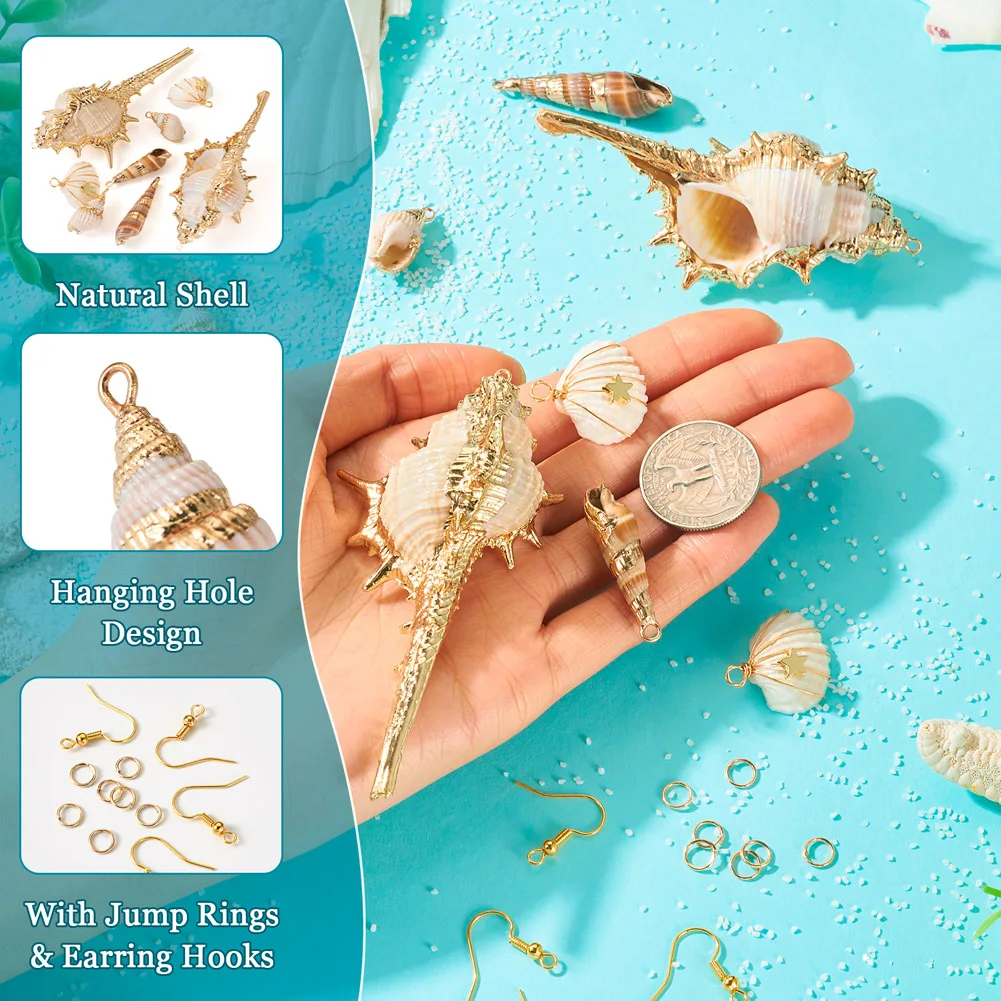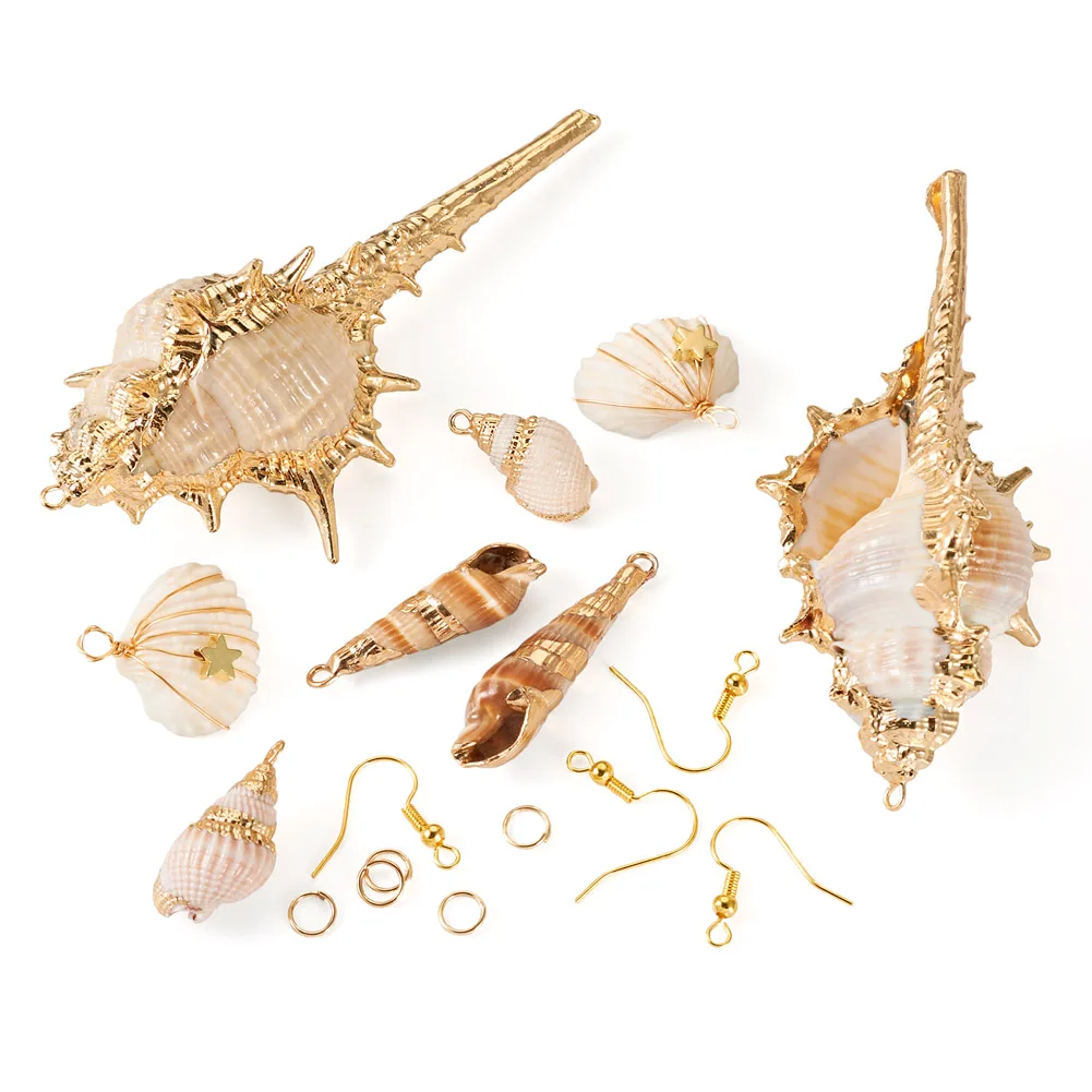These jewelry making kits include shell pendants and earring accessories, perfect for creating unique, beach-inspired jewelry pieces.